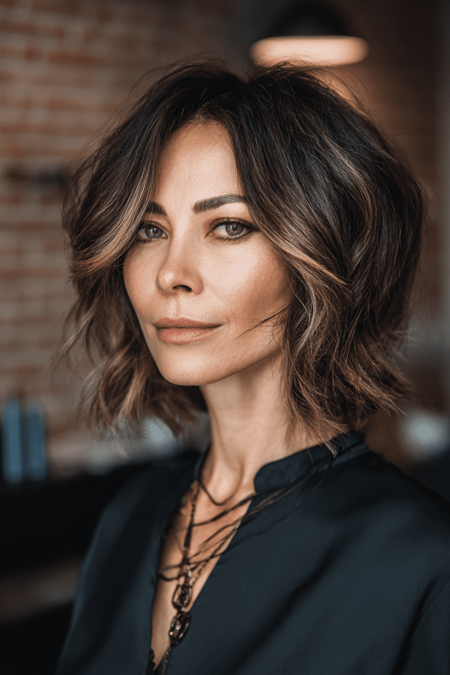 The choppy bob with face-framing layers is all about fun, texture, and movement. This playful style features uneven, choppy ends that add instant volume, making it a great pick for fine or flat hair. The layers around the face are gently angled to highlight your cheekbones and jawline, creating a flattering and youthful look. It’s super low-maintenance—you can let it air-dry for a carefree, tousled vibe or style it sleek for a sharper edge. Either way, it’s effortlessly cool.
