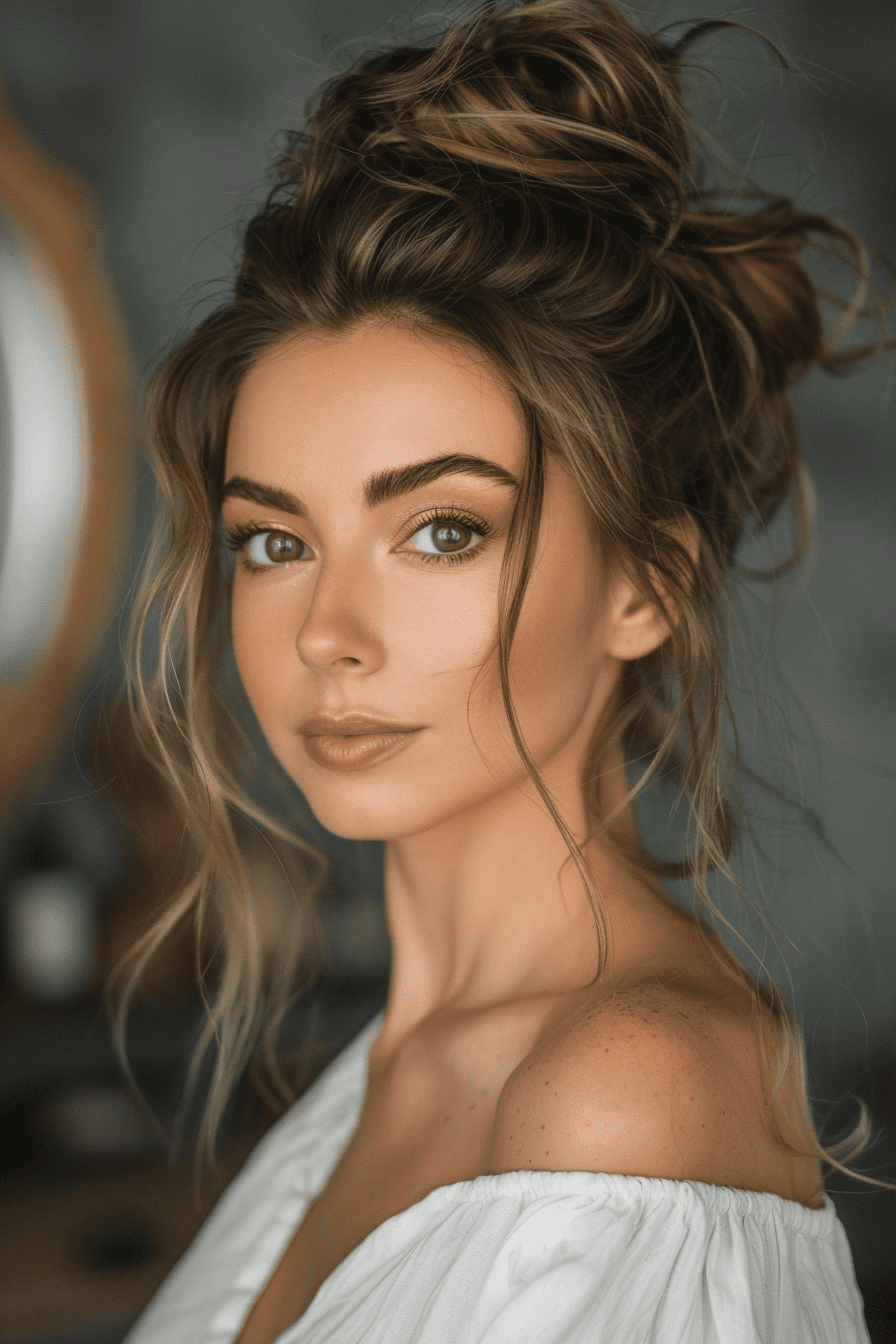 This bun is all about soft elegance. The curls tucked low with a few face-framing strands create a dreamy look.