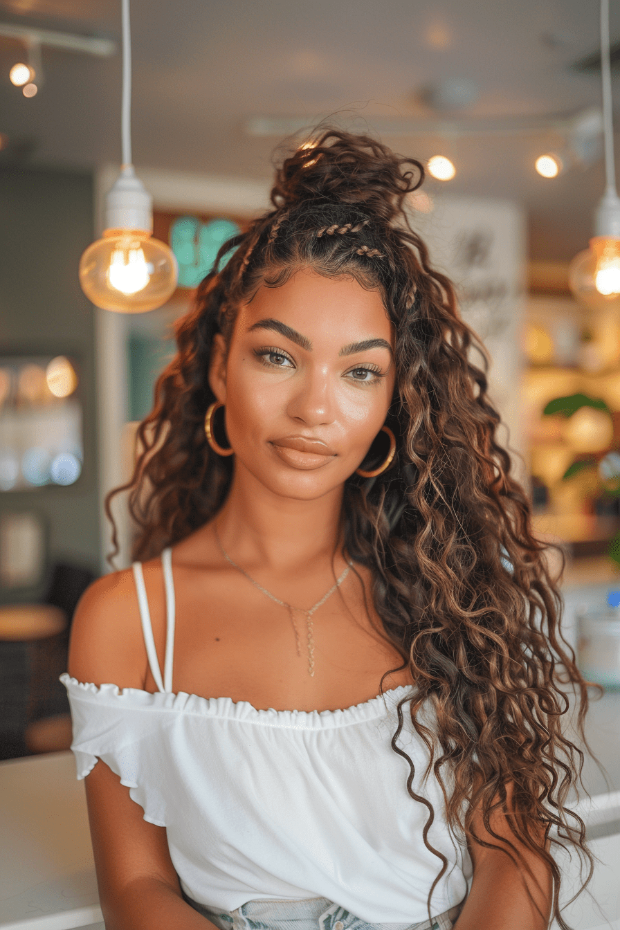 16. Half-Up Braided Curly Style