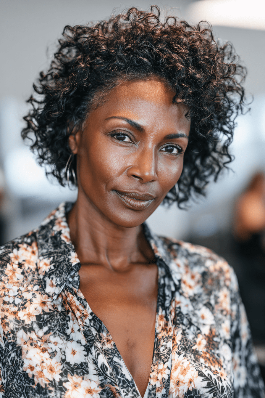 The Defined Coily Bob is a stunning short style that celebrates your natural texture. With coils that are shaped into a neat bob, this look is all about bounce, volume, and shine. It frames your face beautifully and keeps things stylish without needing too much fuss. Just add a curl cream or leave-in conditioner to define your coils and you’re good to go. It’s perfect for Black women over 50 who want bold, easy beauty.