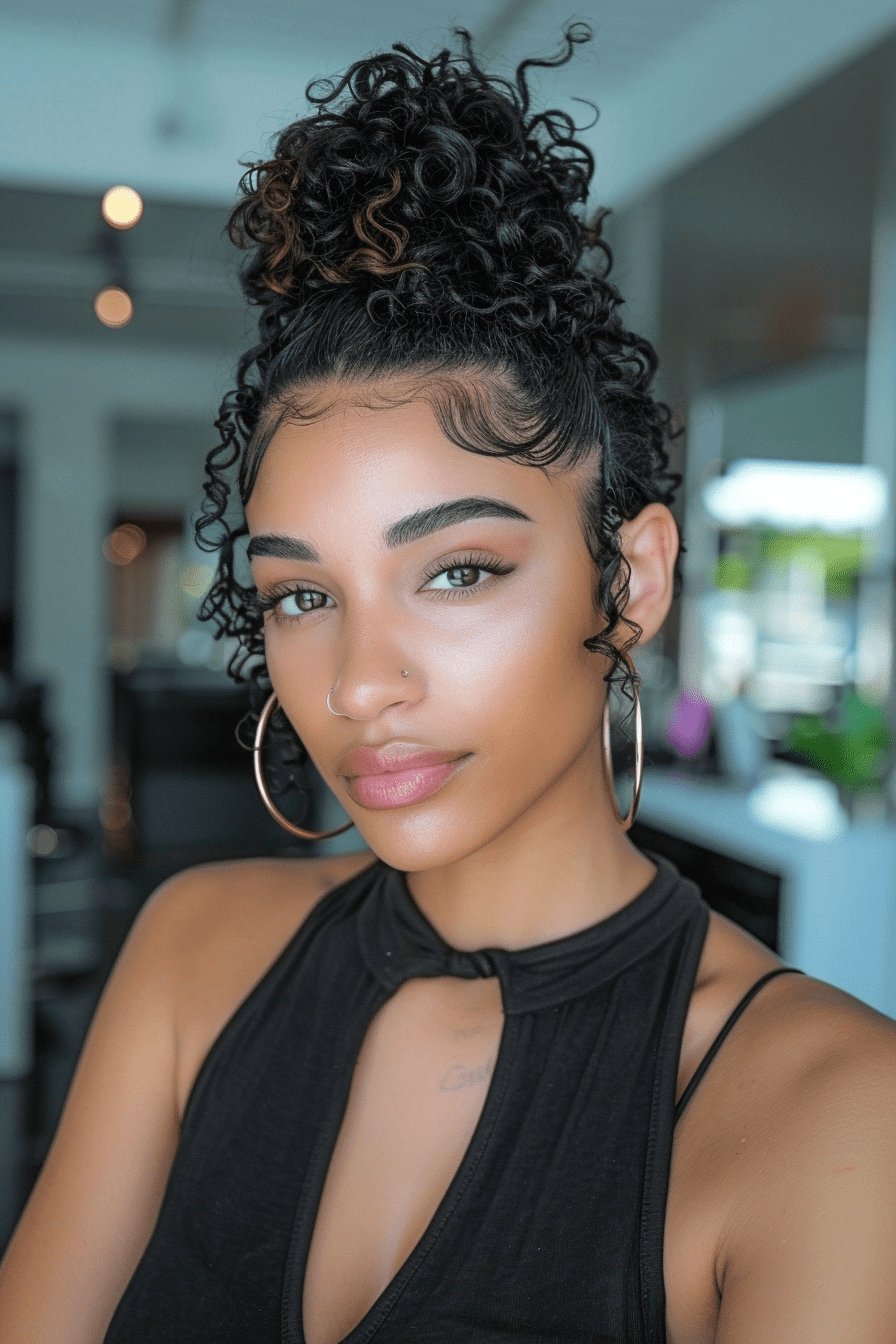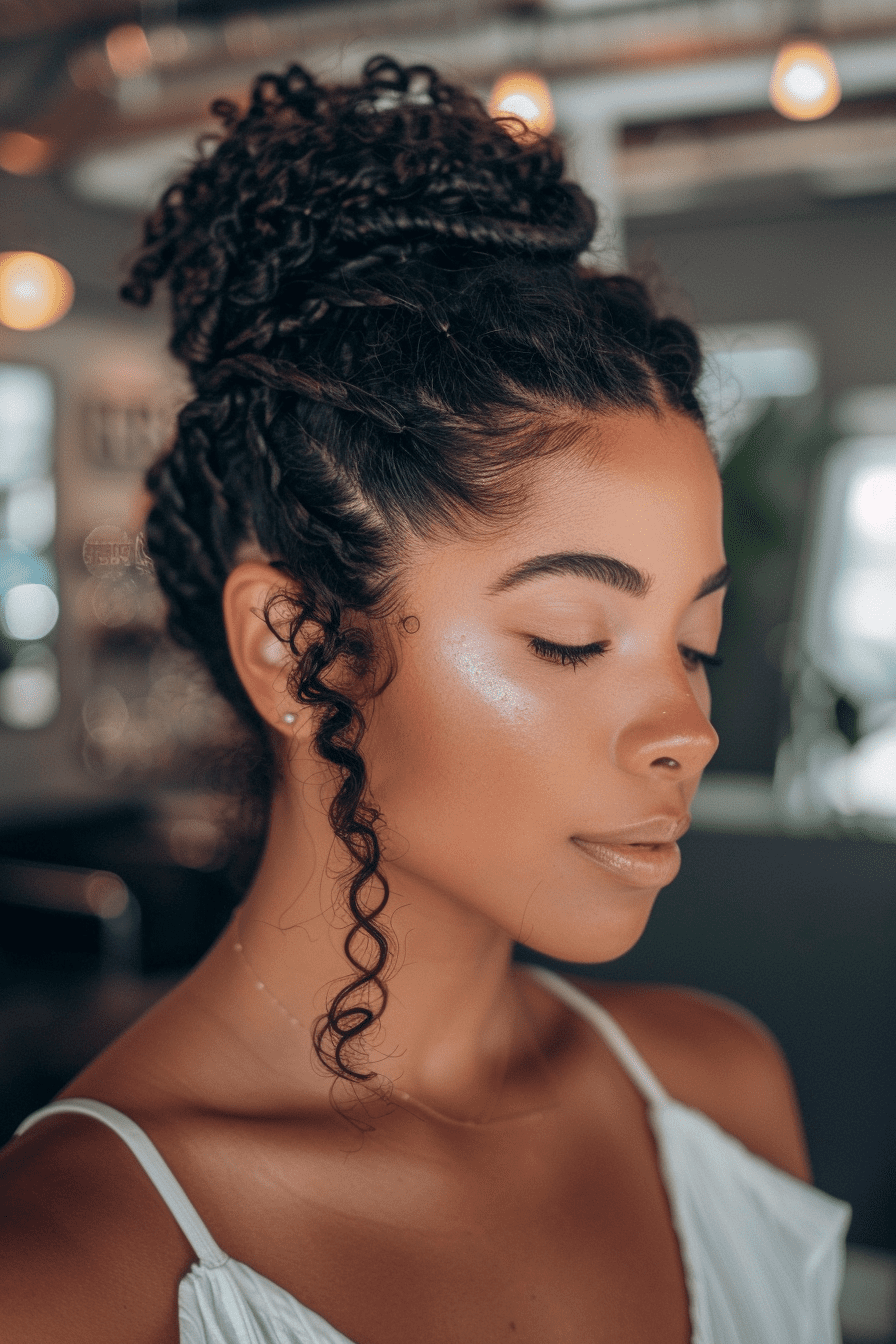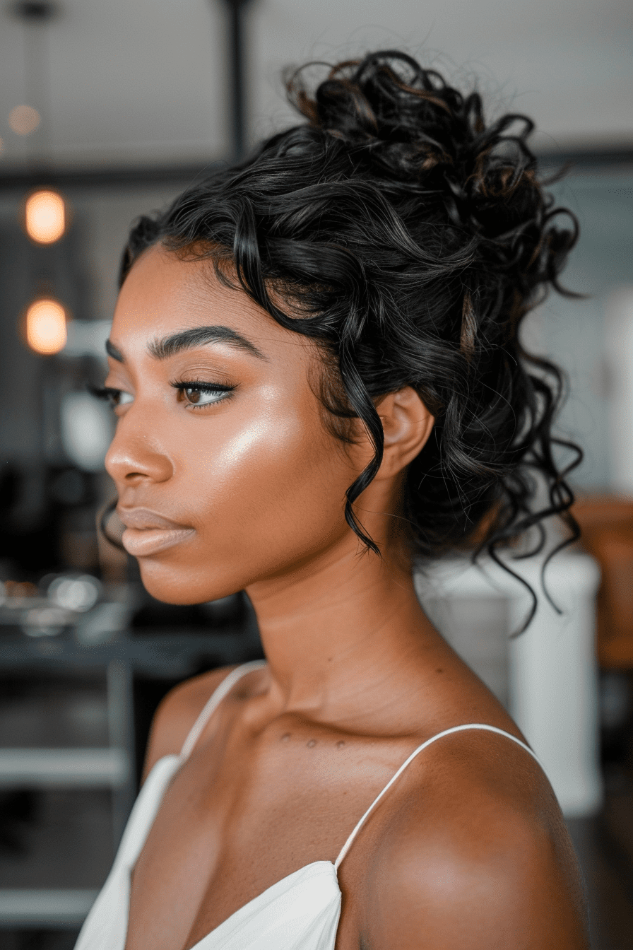 The rolled bun is a timeless favorite. It’s gentle on the curls and looks sophisticated.