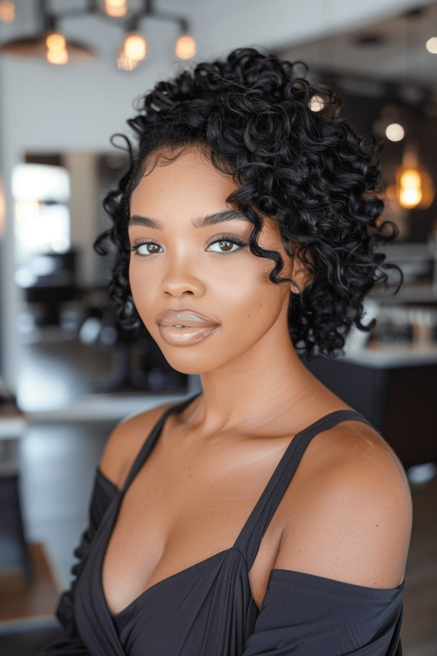 This style keeps curls tucked at the base while maintaining softness on top.