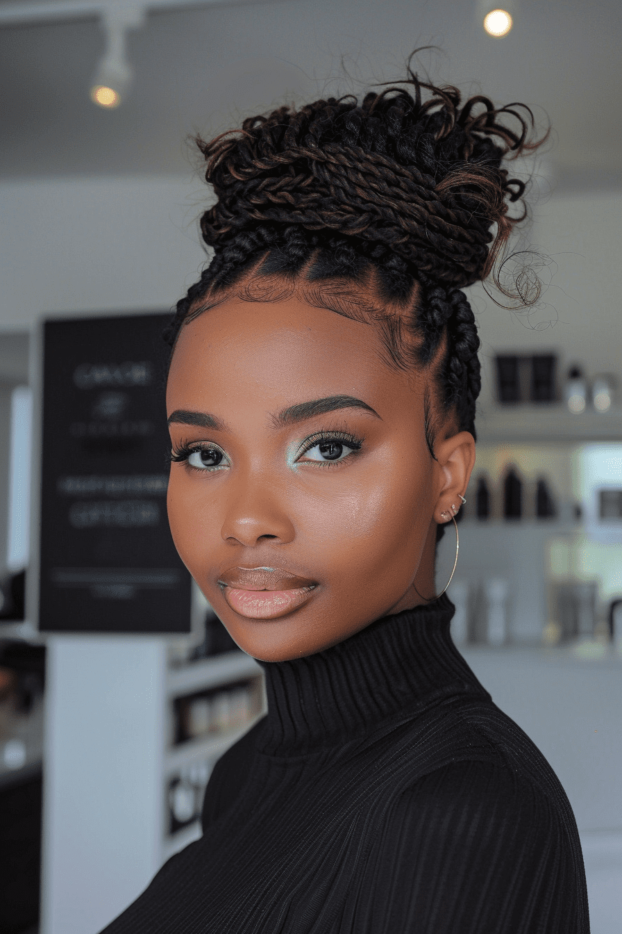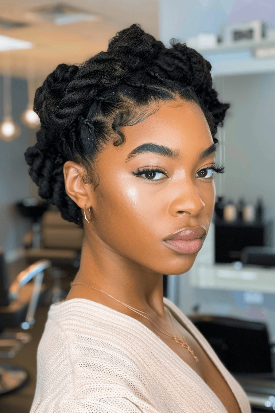 The twisted crown is both elegant and protective, keeping ends tucked while highlighting your texture.