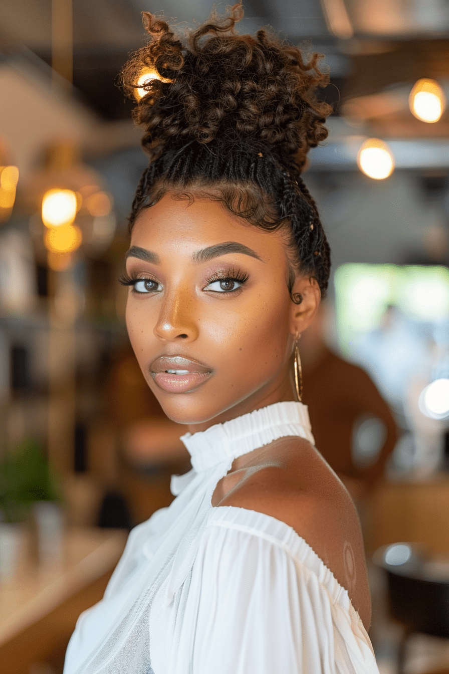 Combining a loose braid and a bun creates a soft, textured look that’s gentle on 3A curls.