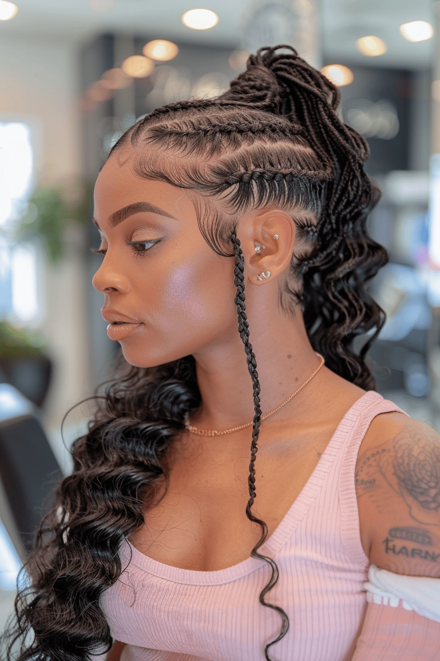 19. Braided Ponytail with Loose Curls
