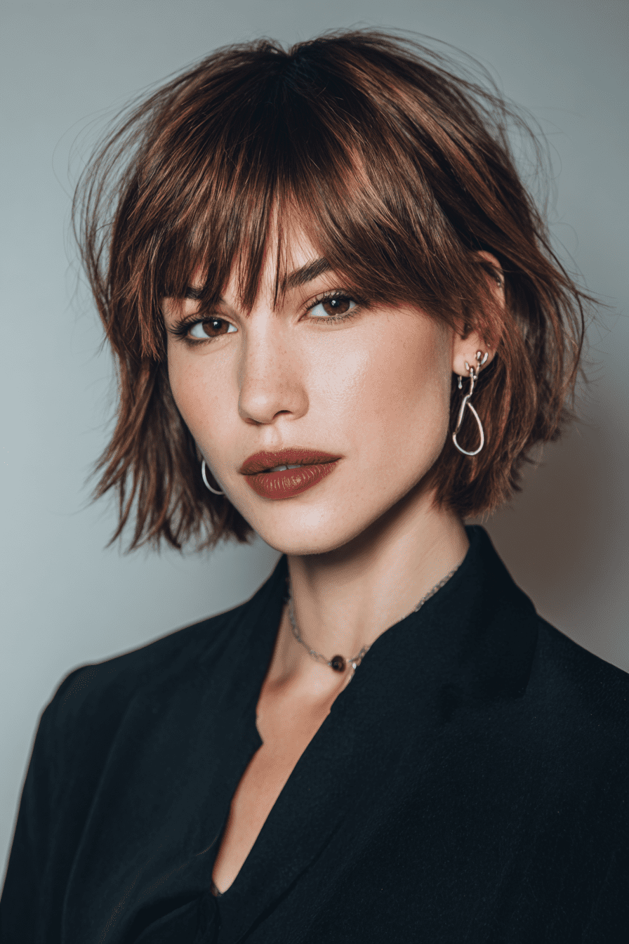 The choppy bob with face-framing layers is all about fun, texture, and movement. This playful style features uneven, choppy ends that add instant volume, making it a great pick for fine or flat hair. The layers around the face are gently angled to highlight your cheekbones and jawline, creating a flattering and youthful look. It’s super low-maintenance—you can let it air-dry for a carefree, tousled vibe or style it sleek for a sharper edge. Either way, it’s effortlessly cool.
