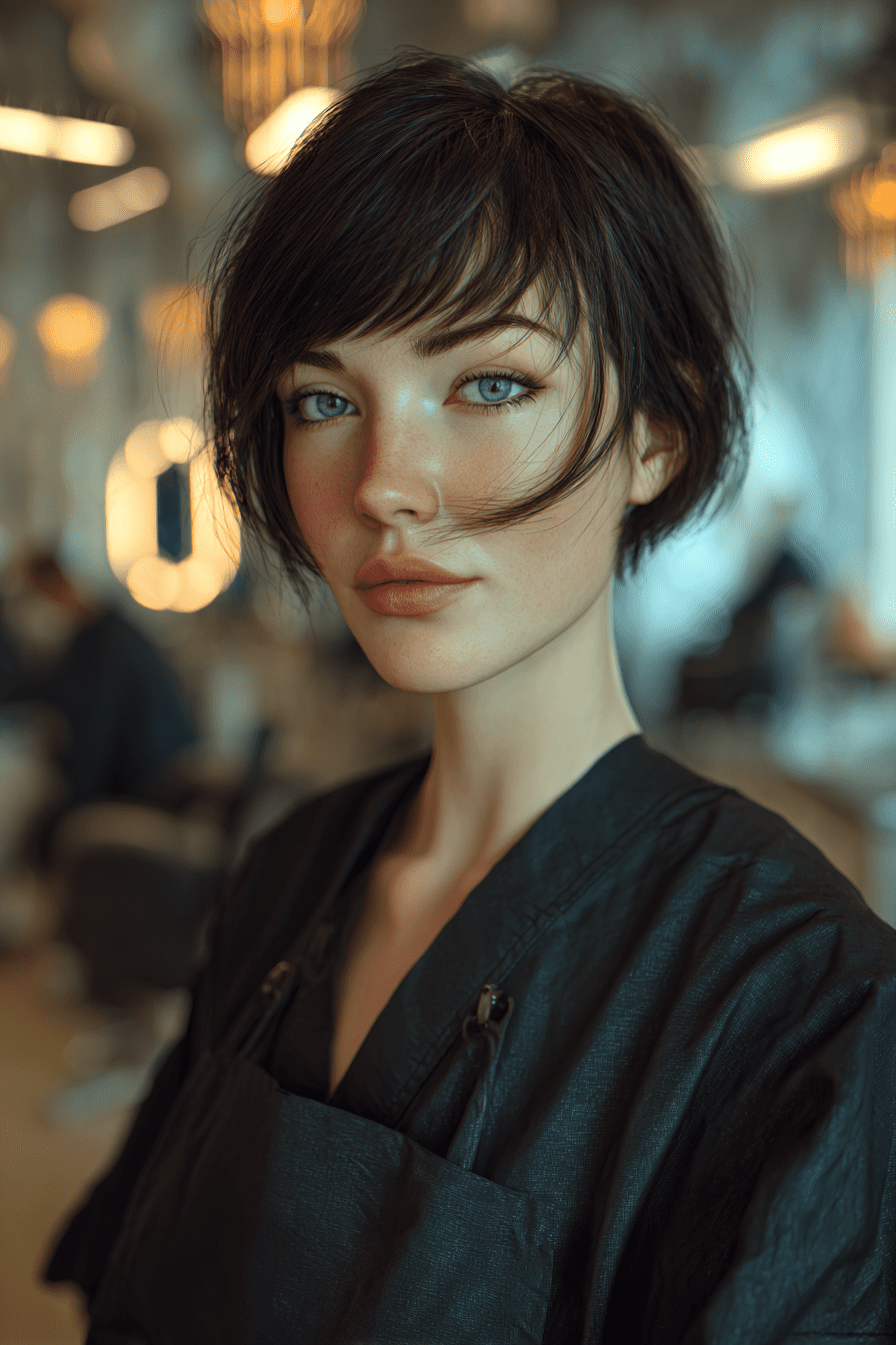 The pixie bob is the perfect mix of short and stylish! It blends the neat shape of a bob with the cute, cropped feel of a pixie cut. This hairstyle keeps the back and sides short while leaving a little more length on top and around the face, which gives your hair some fun movement and shape. It’s great for fine hair because it adds volume and fullness without needing much effort. Just a quick style and you’re good to go!
