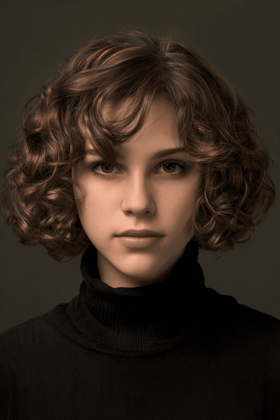 The curly bob is all about big bounce and fun vibes! It’s a short haircut that shows off your natural curls while keeping things neat and cute. This style gives your curls room to shine and adds a fresh, playful shape around your face. Great for fine or thick hair, the curly bob makes everything look fuller and more lively. Just add a little curl cream, scrunch it up, and you’re curly-girl ready!