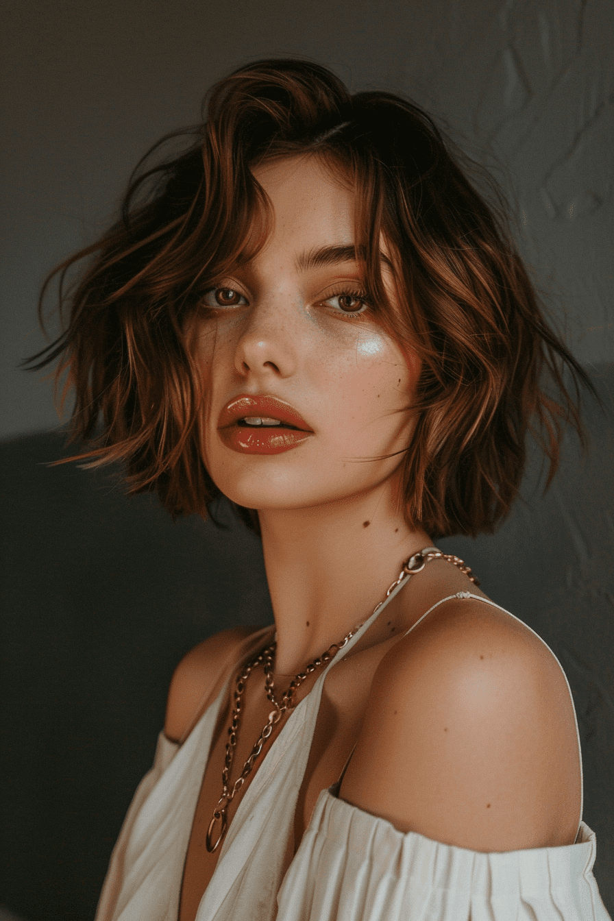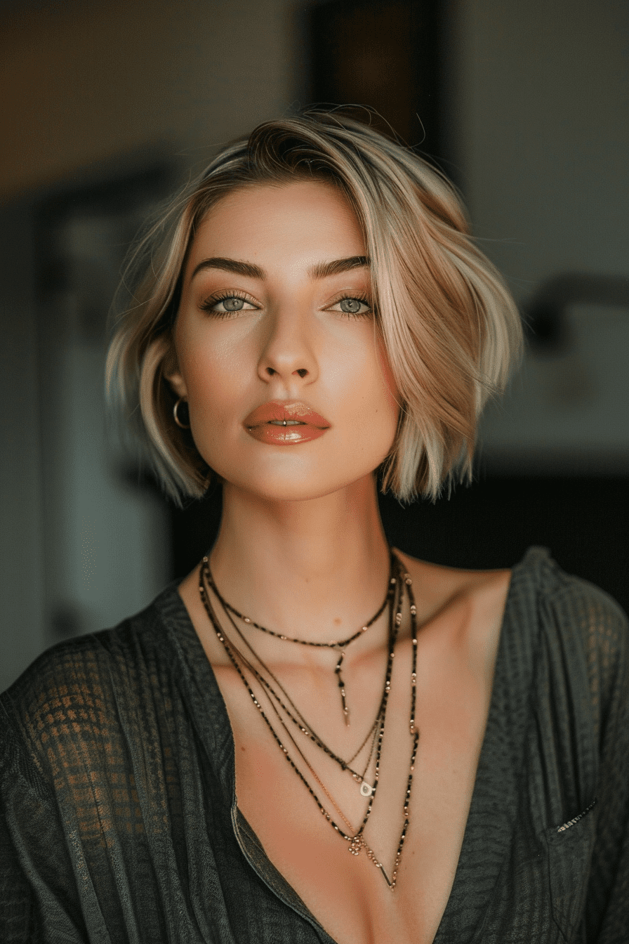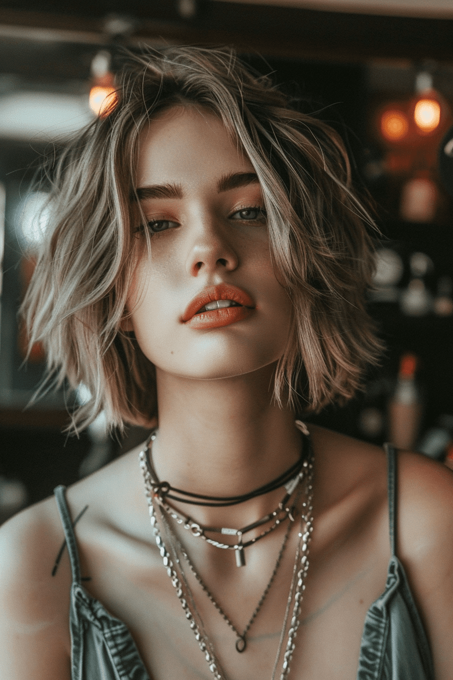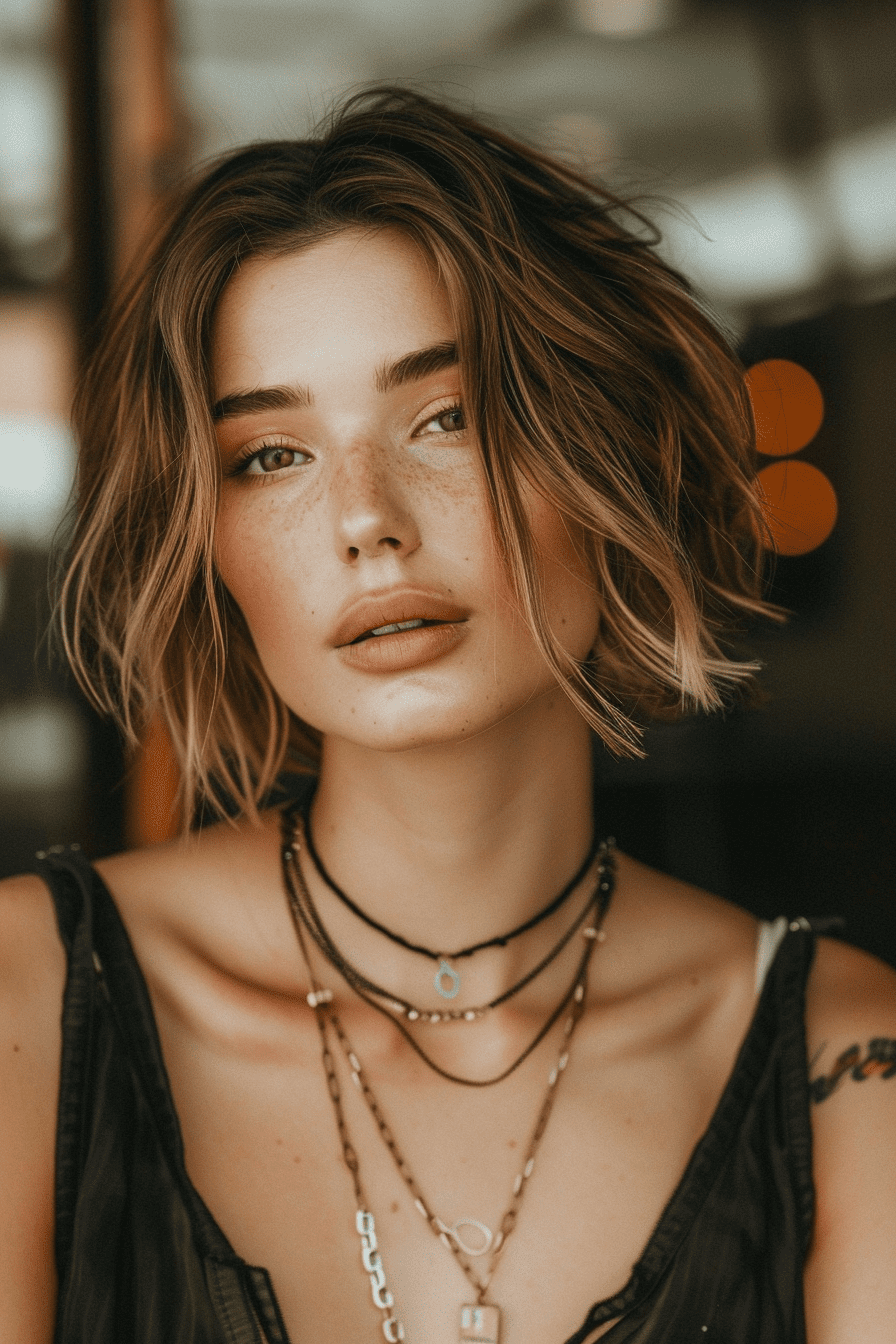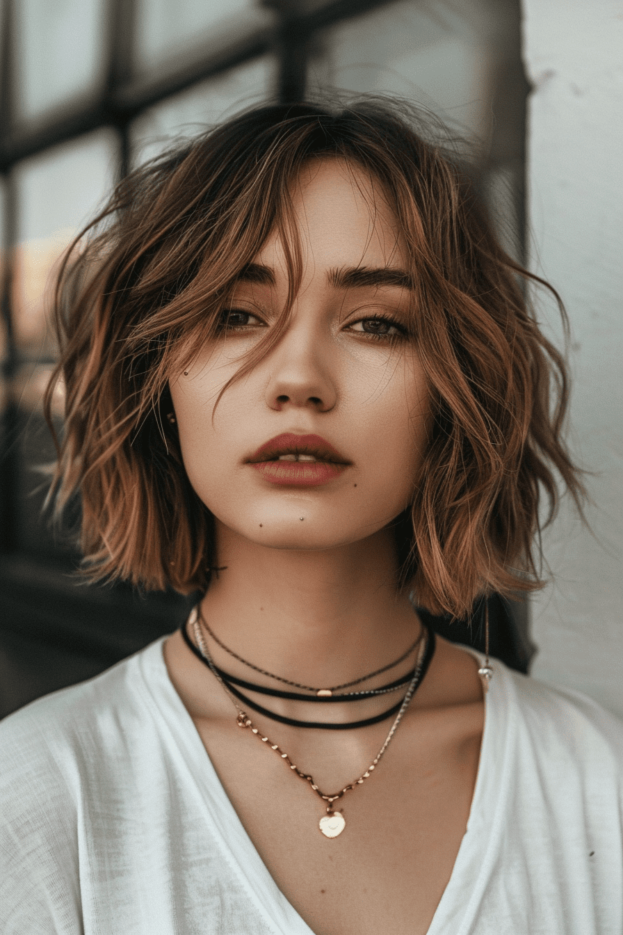 This bob has that lived-in, trendy feel. On an oval face, the messy texture looks effortless and youthful.