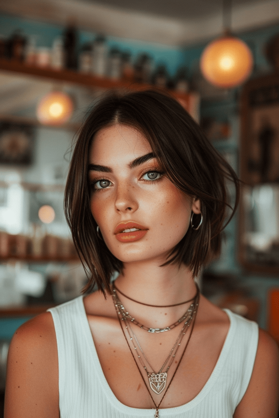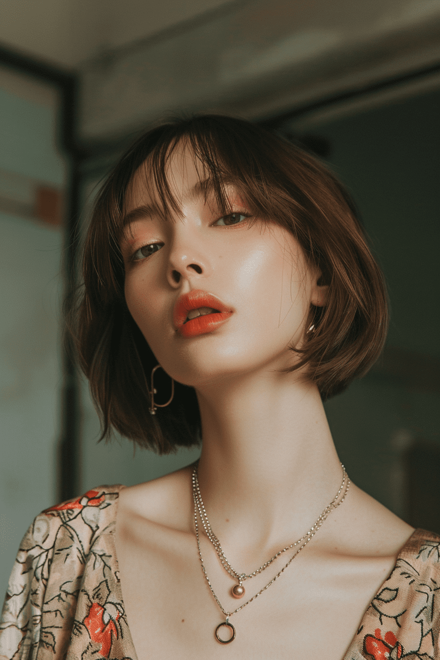 This bob is easy, feminine, and flattering on oval faces. The layers add gentle volume without being too bold.
