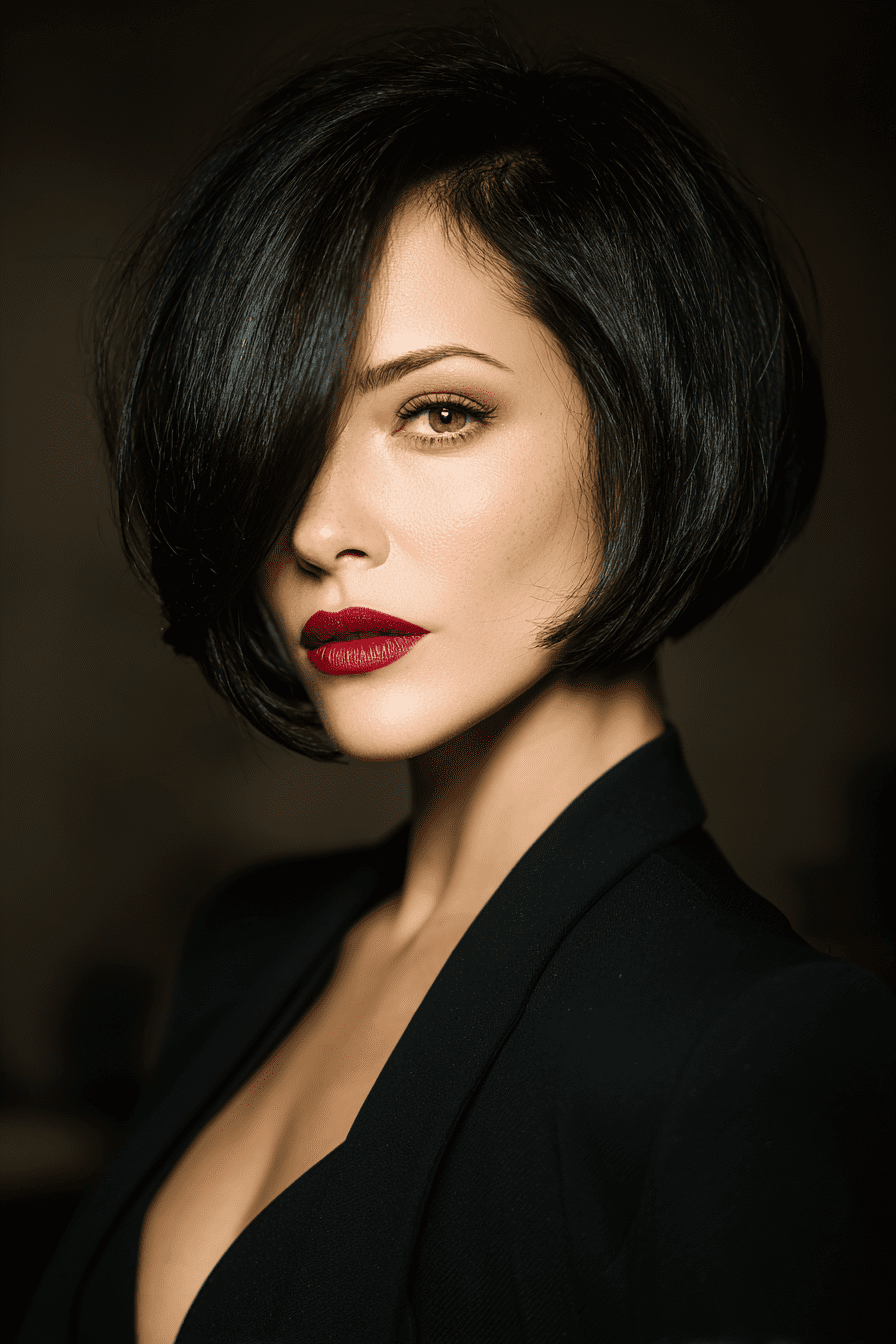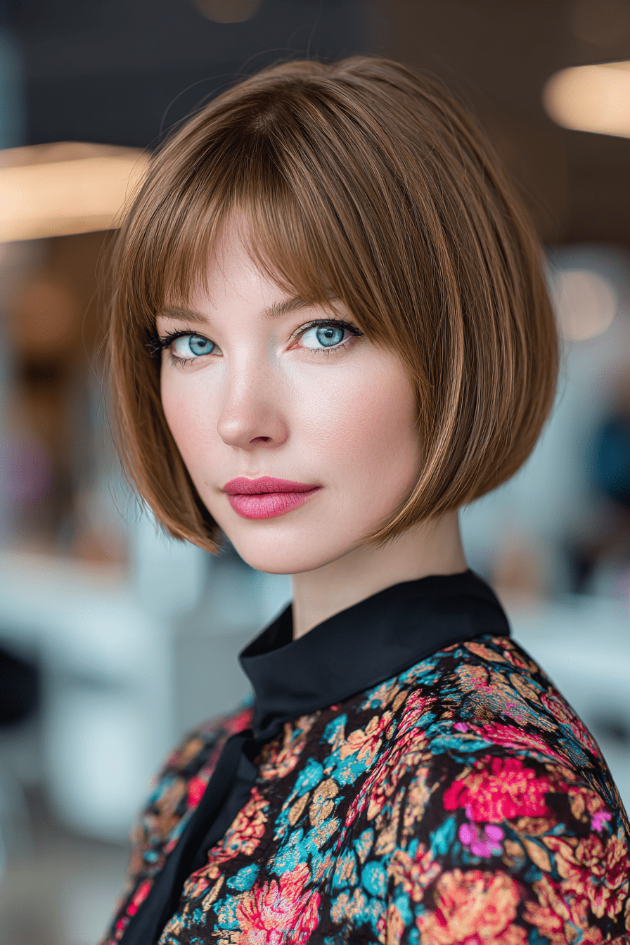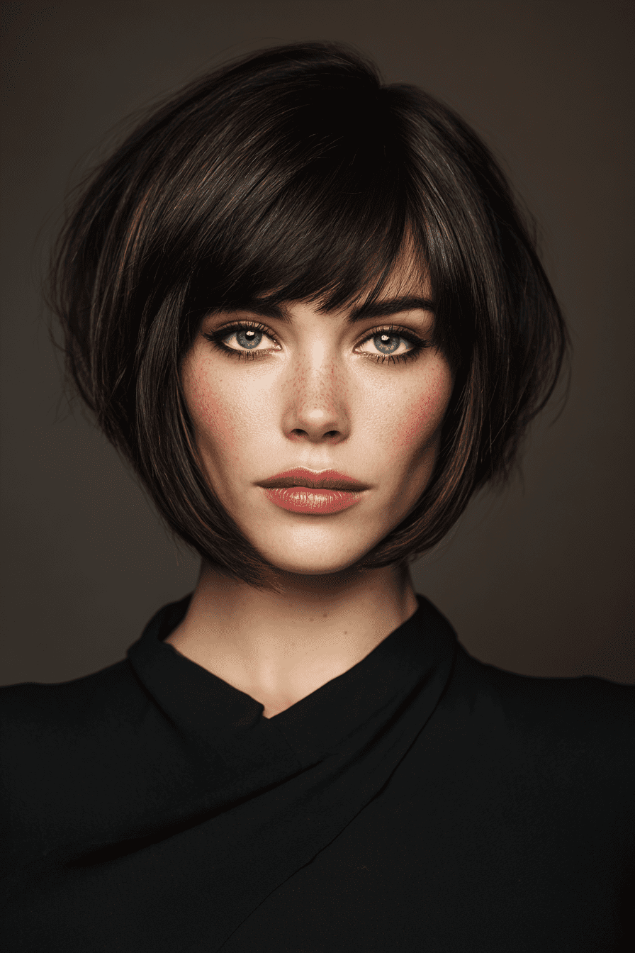 The inverted stacked bob with bangs is my power move—it’s sharp, modern, and full of attitude. The dramatic angle in the front paired with soft bangs makes fine hair look instantly thicker and more structured.