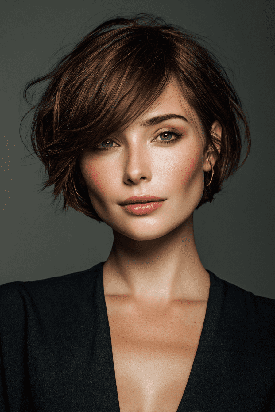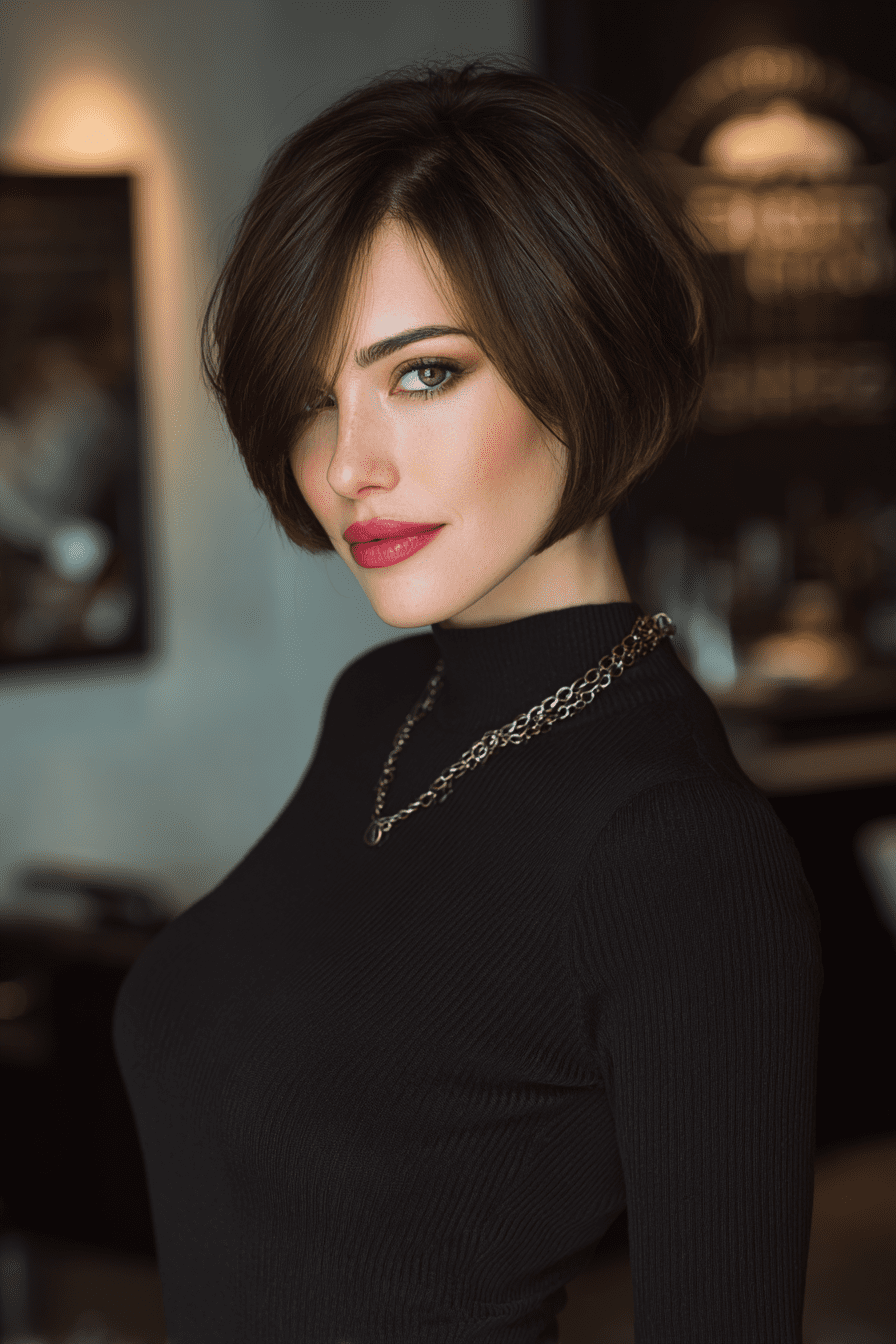 I love how side-swept bangs give the stacked bob a softer, romantic edge. The angled layers at the back still boost volume, but the bangs draw attention to my eyes and cheekbones.