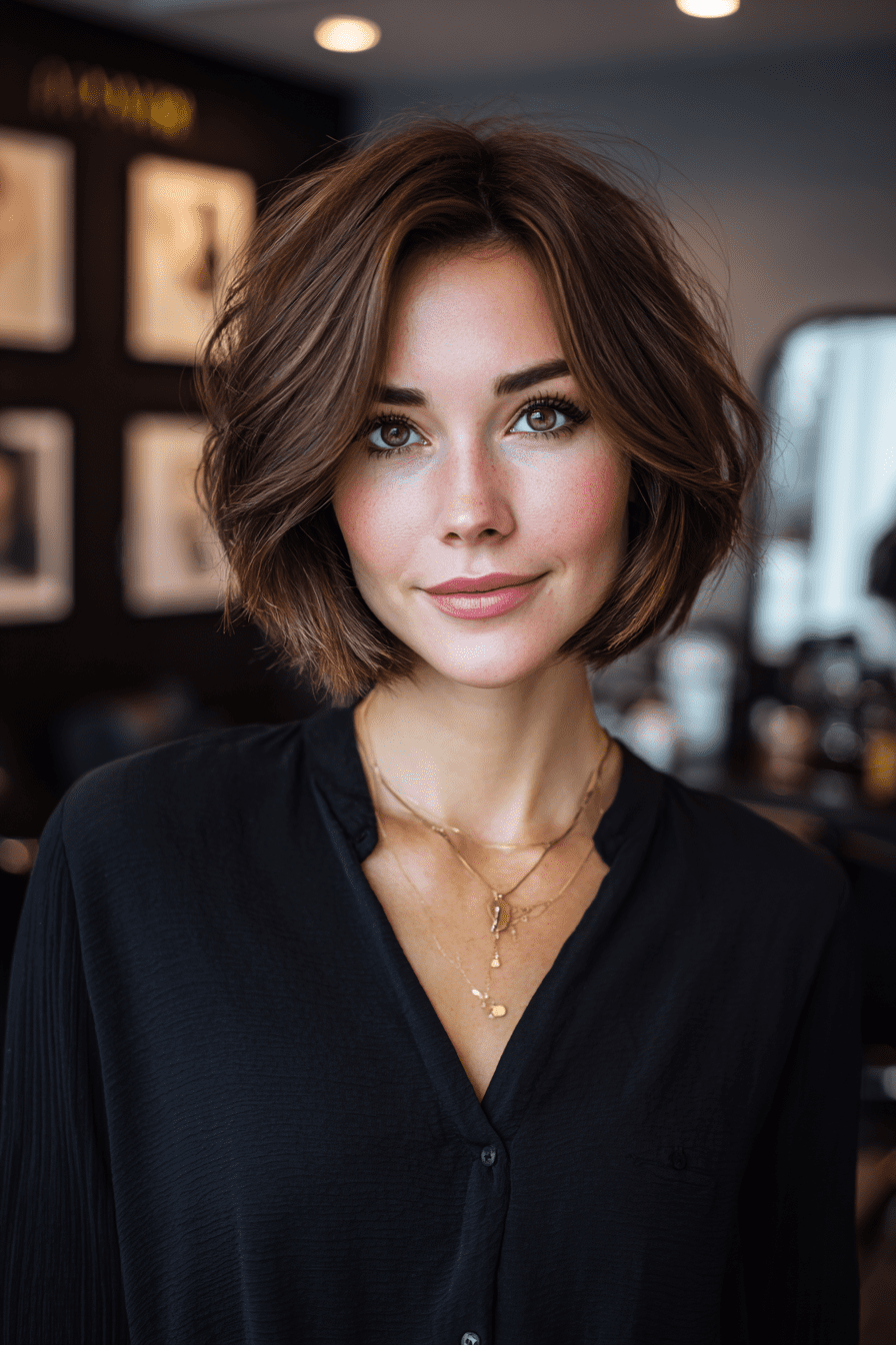 The stacked bob with soft layers feels elegant yet easygoing. The gentle layering gives my fine hair more body without being too heavy, while the stacked back adds subtle lift.