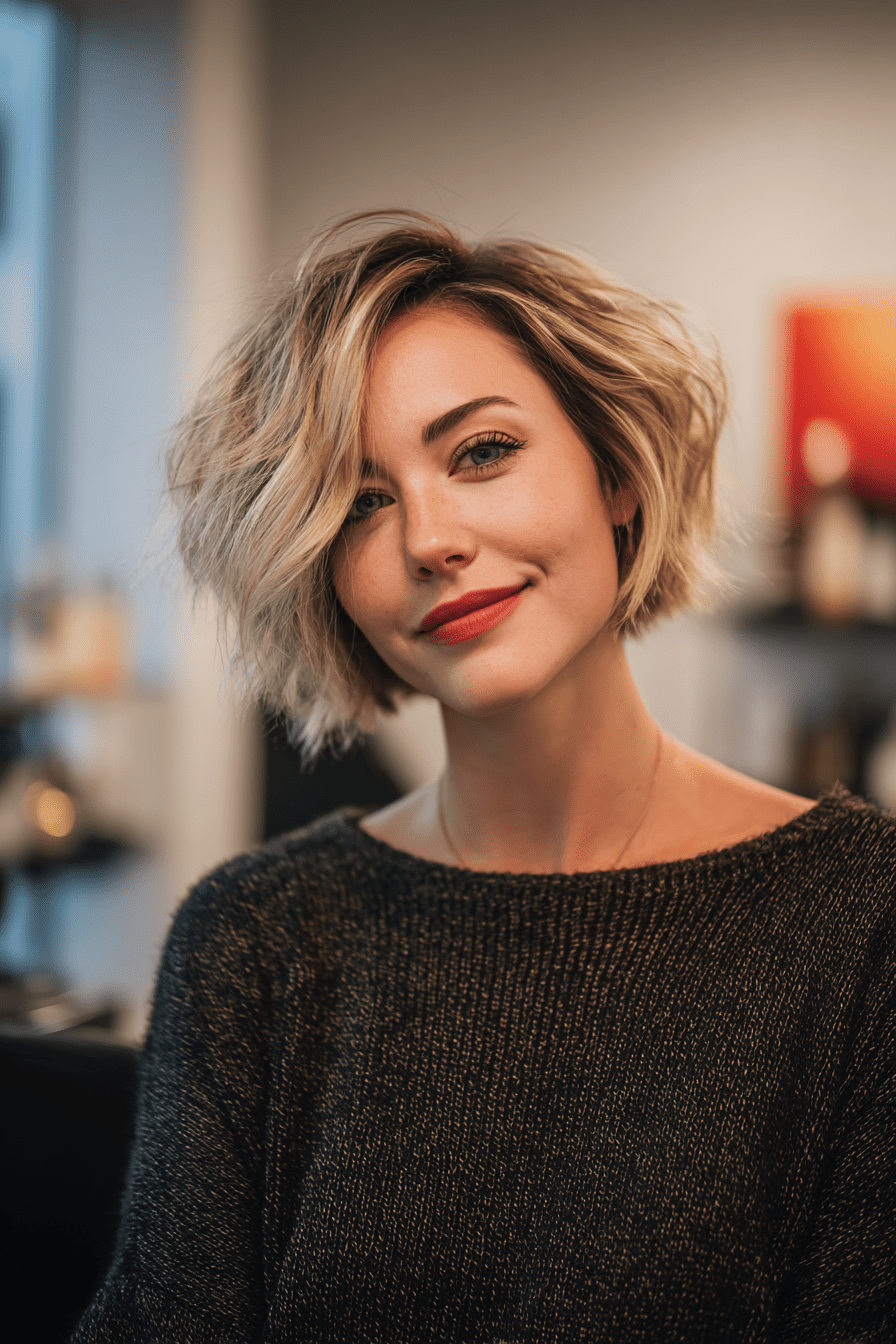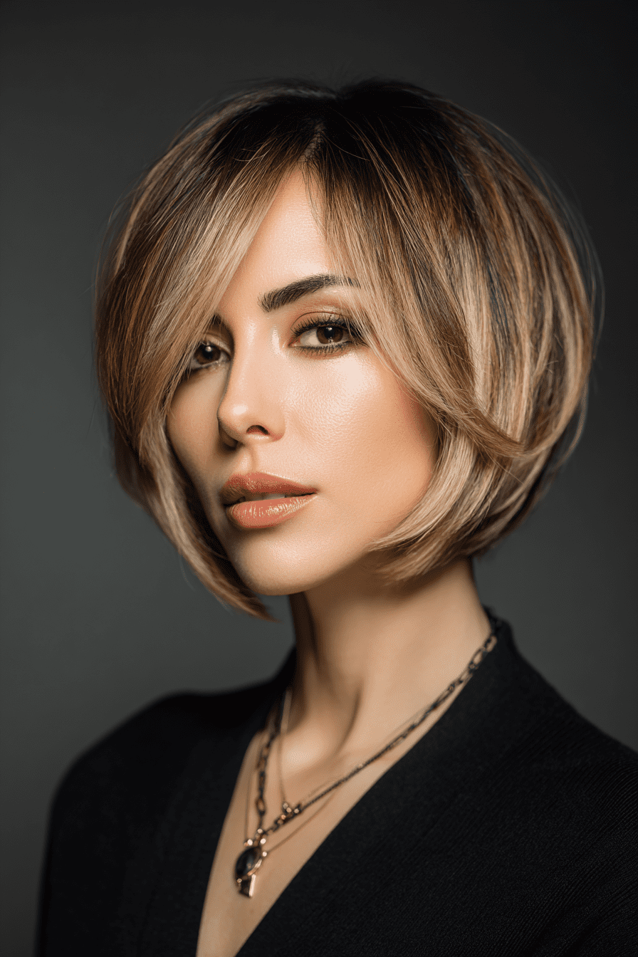 The stacked bob with balayage is my go-to for effortless dimension. The hand-painted highlights blend so naturally, giving my fine hair depth and movement while the stacked back adds instant volume.