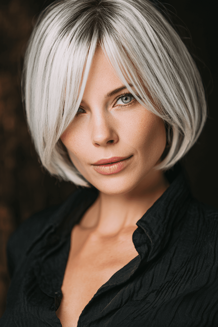 The platinum blonde stacked bob makes such a bold, chic statement. The icy tone brightens my complexion, while the stacked layers keep my fine hair looking fuller and lifted.