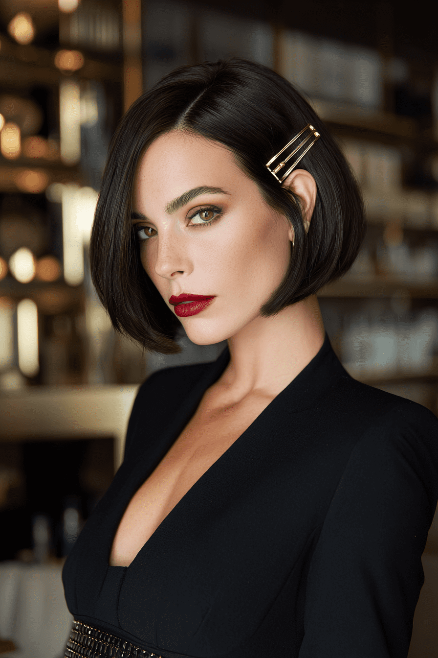 My trick? Blow-dry with a round brush to keep the front layers smooth. A delicate barrette or side clip makes it feel even more feminine.